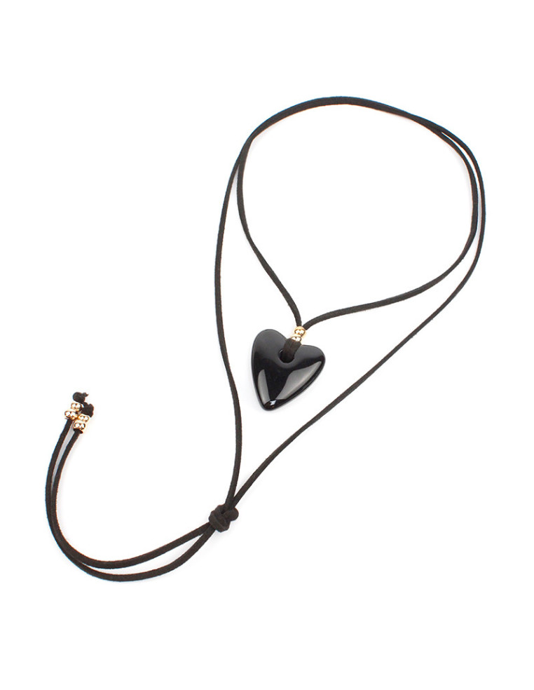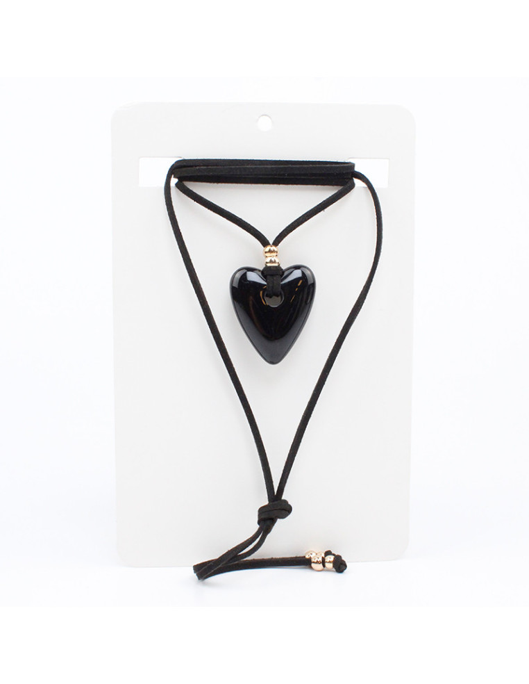 Collar de gamuza de múltiples vueltas, con dije de acrílico con forma de corazón y terminales en punteras. Medida: 140cm de largo.