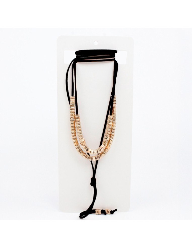 Collar corbatero de gamuzas con piezas pasantes de CCB dorados.