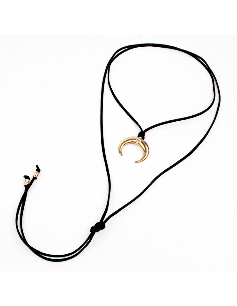 Collar de gamuza de múltiples vueltas, con dije de fundición boho y terminales en punteras. Medida: 140cm de largo.