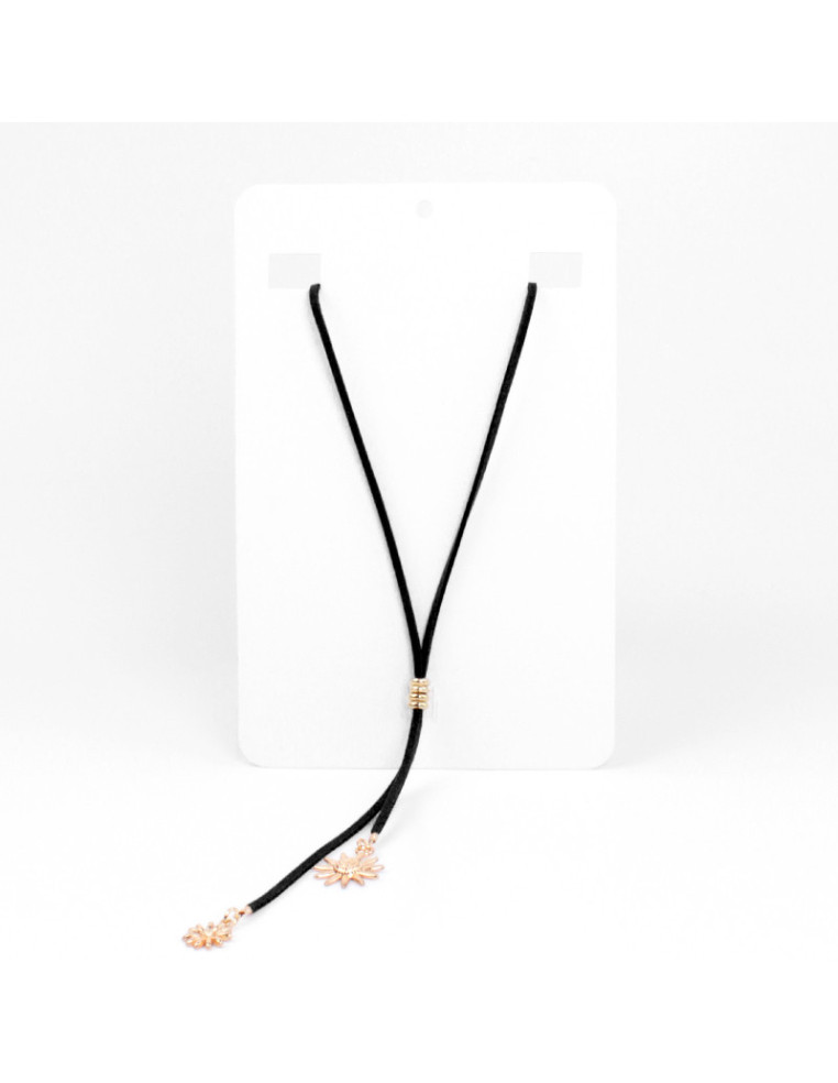 Collar de doble gamuza con dijes terminales en punteras. Medidas 39cm, caídas de 7 y 12cm de largo, ajustable con cadena de enganche de 10cm.