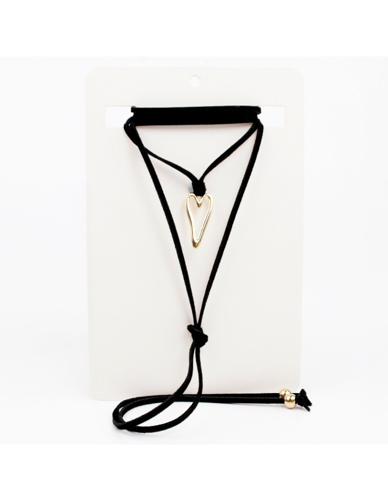 Collar de gamuza de múltiples vueltas, con dije de fundición con forma de corazón y terminales en punteras.
