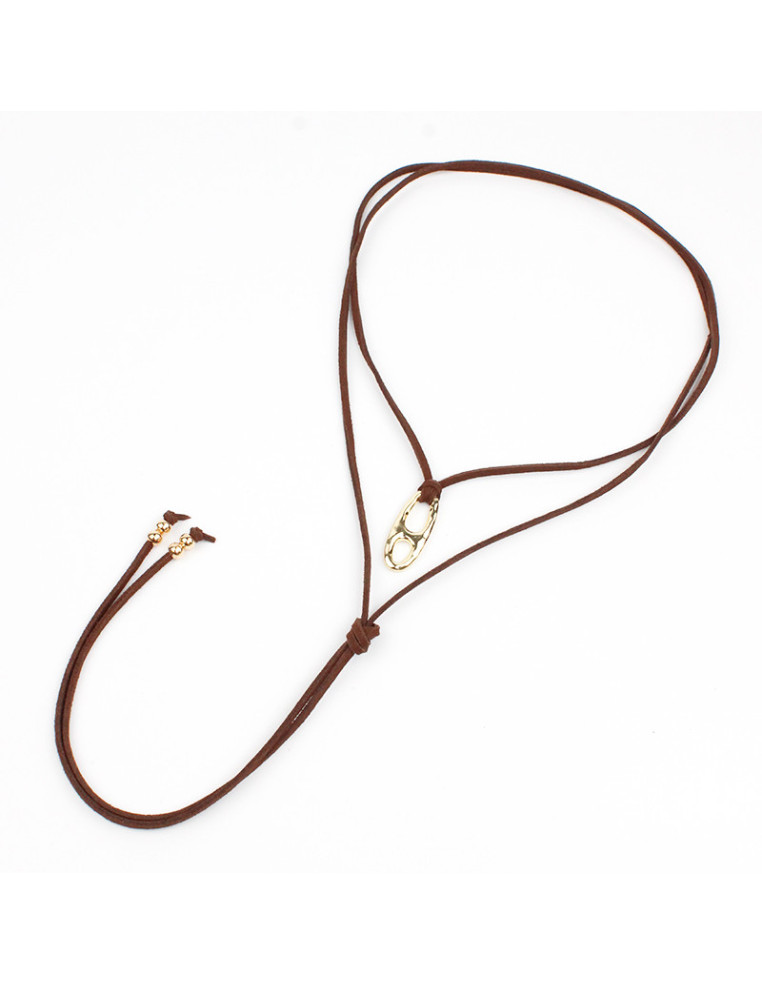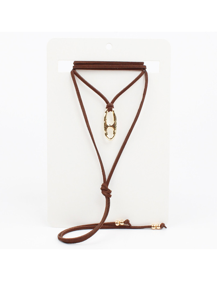 Collar de gamuza de múltiples vueltas, con dije de fundición orgánico y terminales en punteras.
