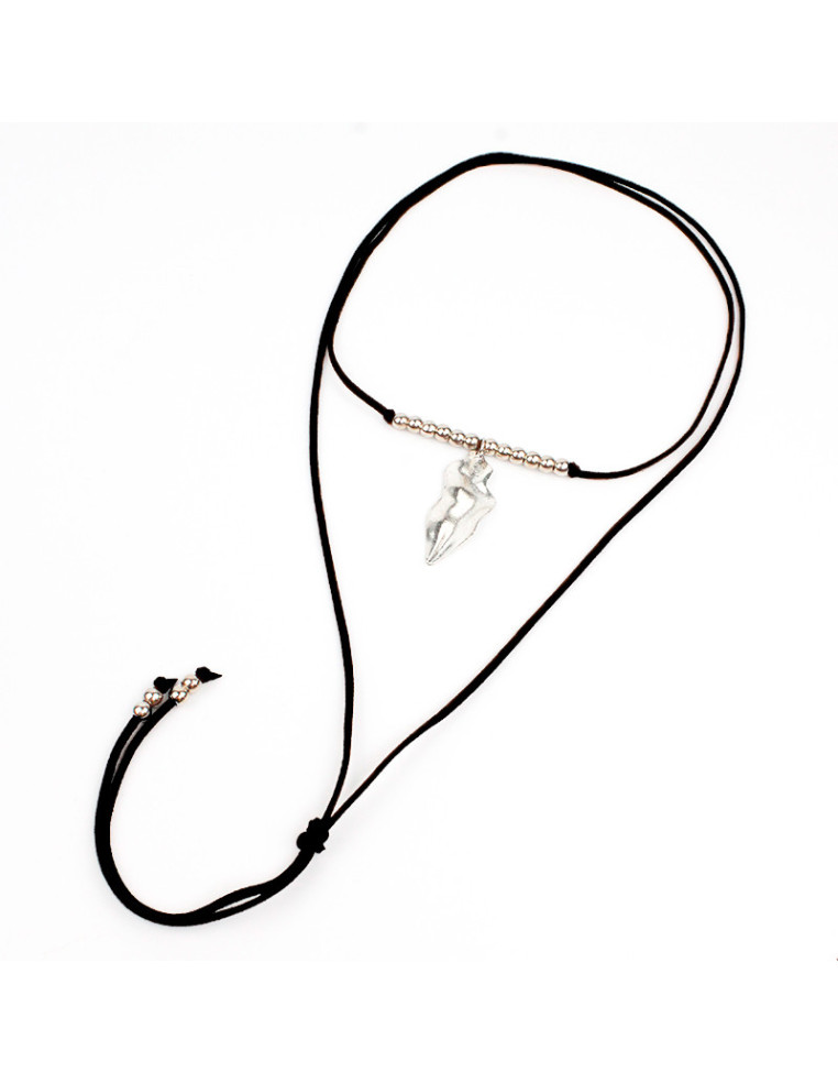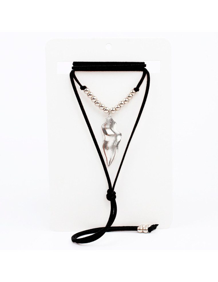 Collar de gamuza de múltiples vueltas, con dije de fundición orgánico y terminales en punteras.