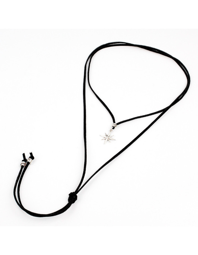 Collar de gamuza de múltiples vueltas, con dije de fundición con forma de estrella y terminales en punteras.