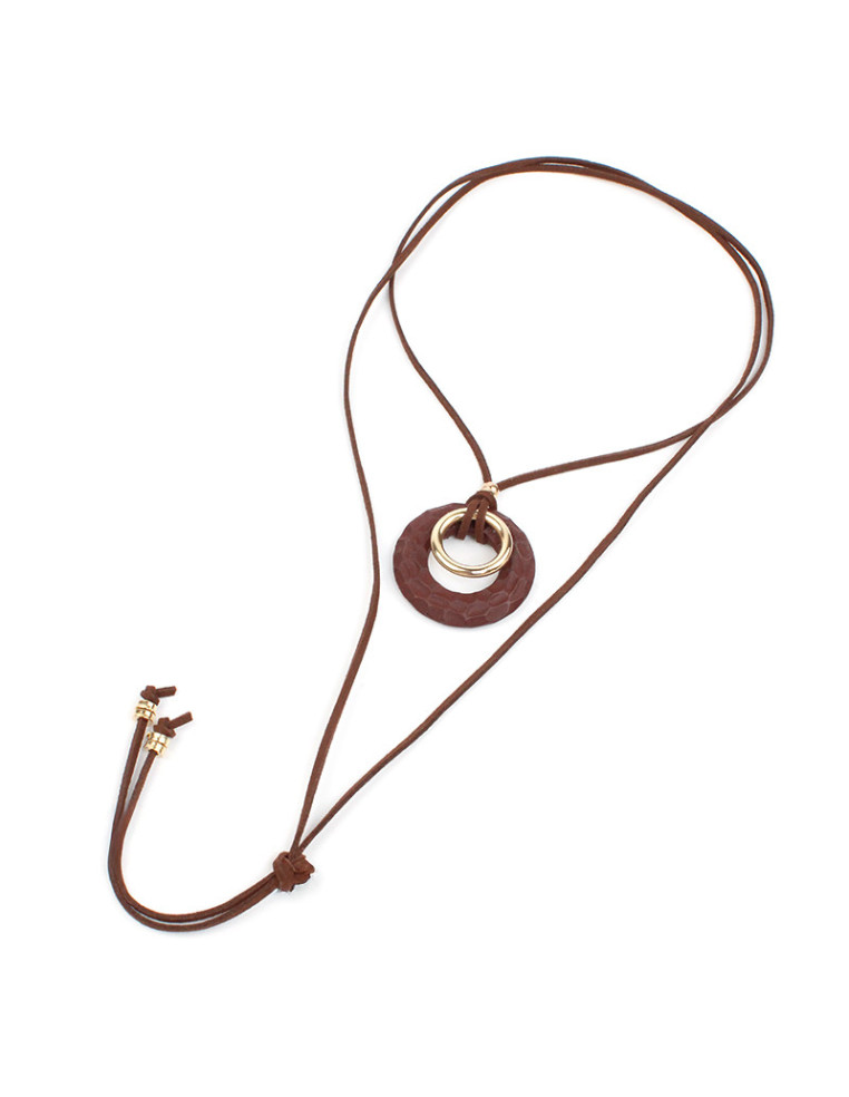 Collar de gamuza de múltiples vueltas, con dije de acrílico, CCB y terminales en punteras.