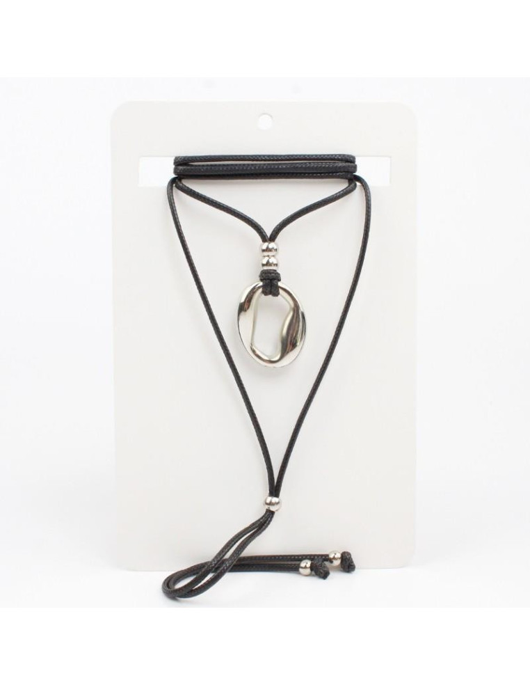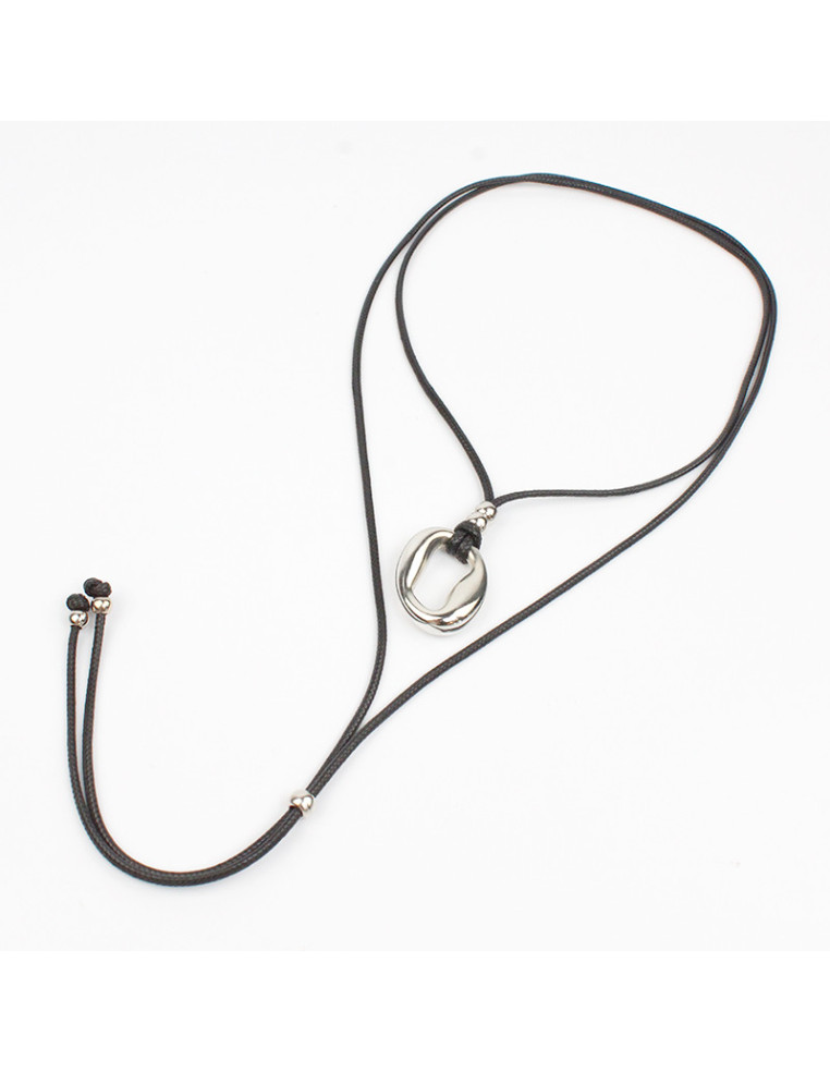 Collar de cordón de múltiples vueltas, con dije de CCB orgánicos y terminales en punteras. Medida: 140cm de largo.