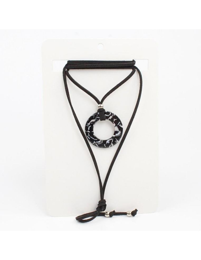 Collar de gamuza de múltiples vueltas, con dije de acrílico y terminales en punteras.