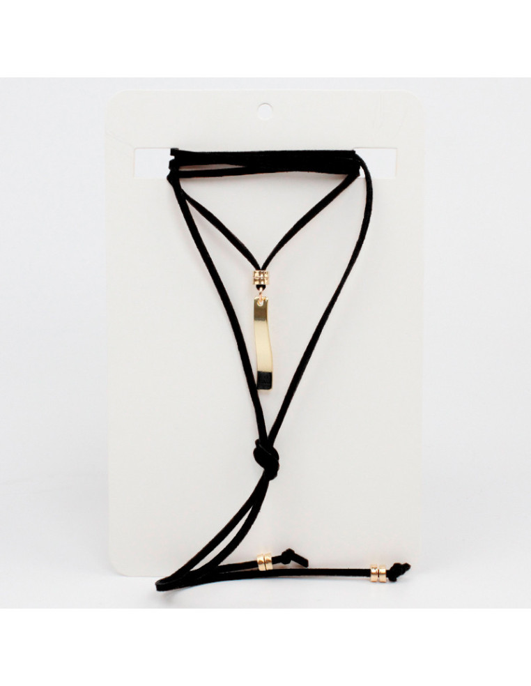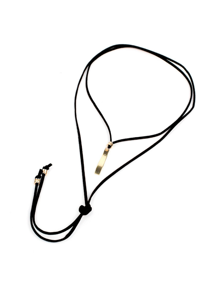 Collar de gamuza de múltiples vueltas, con dije de fundición dorado y terminales en punteras. Medida: 140cm de largo.