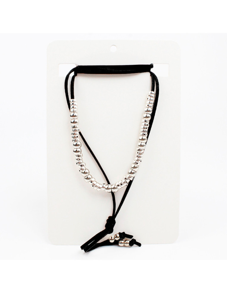Collar de gamuza de múltiples vueltas, con pasantes de CCB y terminales en punteras.