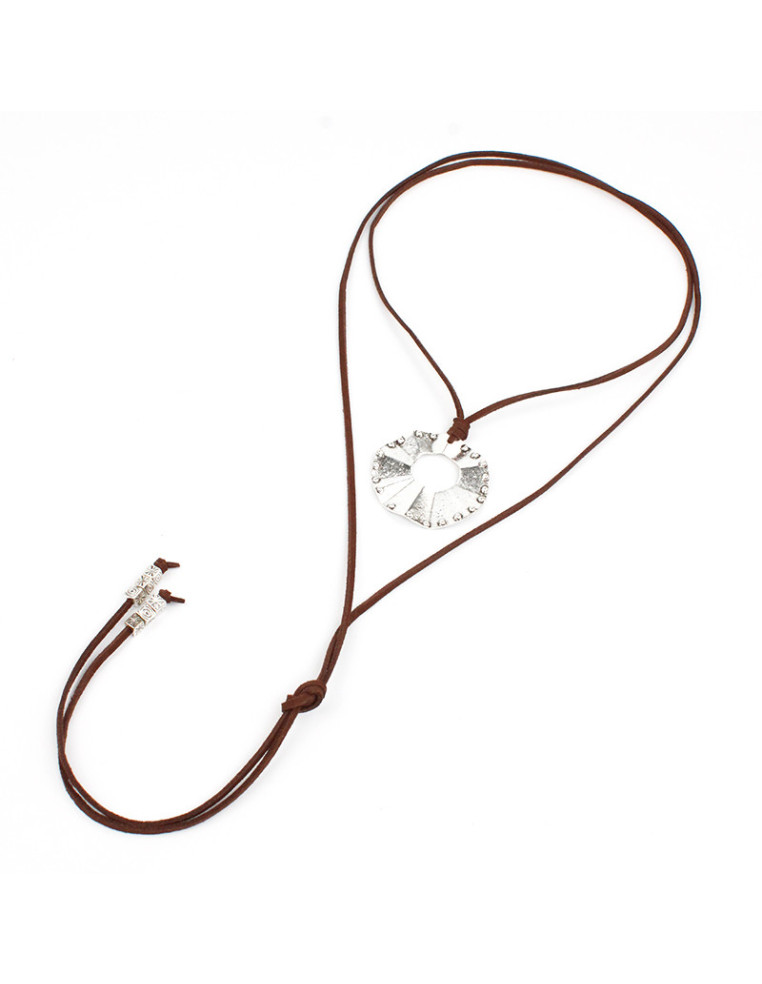 Collar largo de gamuza con dije boho de fundición y terminaciones de CCB.