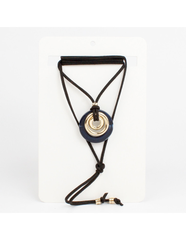 Collar de gamuza de múltiples vueltas, con dije de acrílico y CCB, con terminales en punteras.