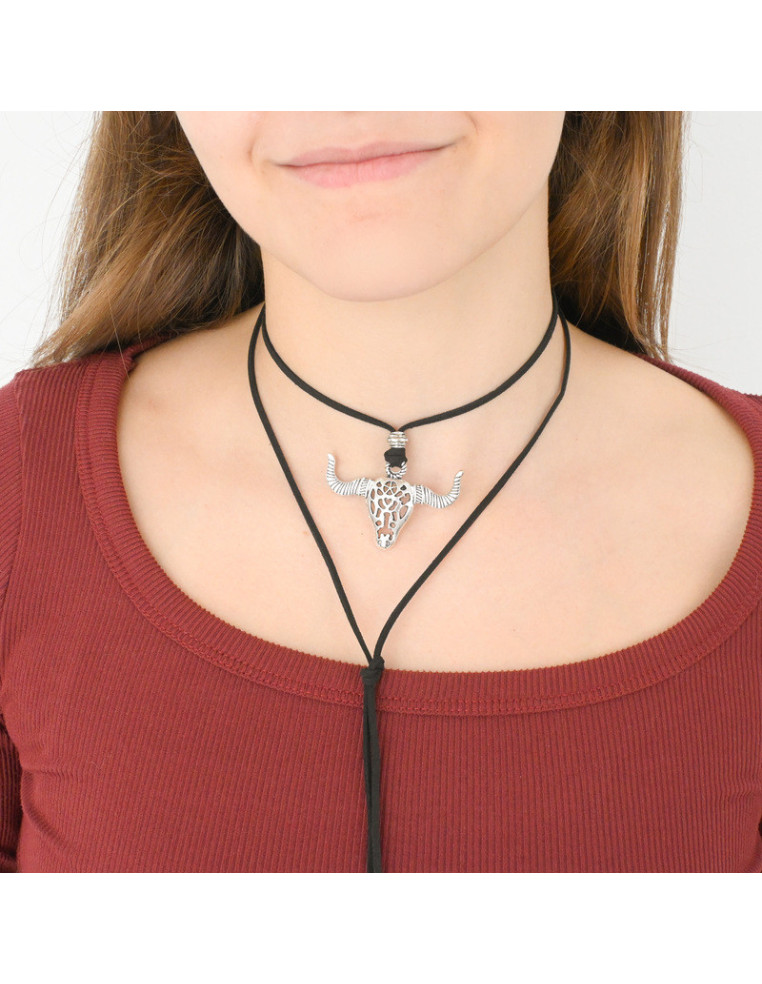 Collar de gamuza de múltiples vueltas, con dije de y terminales en punteras.