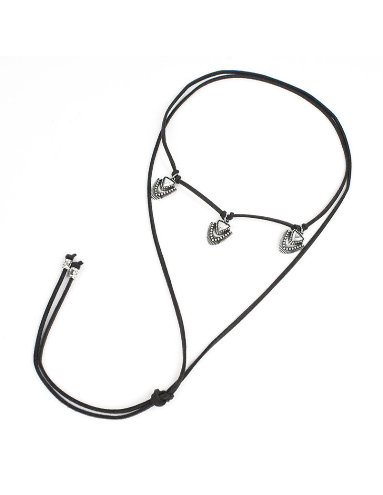 Collar de gamuza de múltiples vueltas, con dijes de fundición boho y terminales en punteras.