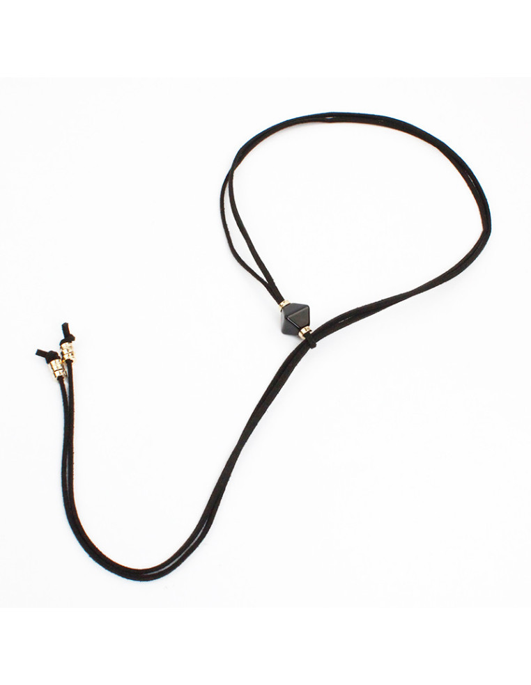 Collar corbatero de gamuza de múltiples vueltas, con pieza de acrílico y terminales en punteras.