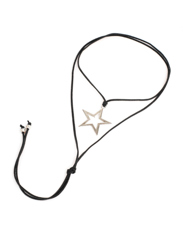 Collar de gamuza de múltiples vueltas, con dije de fundición con forma y terminales en punteras.