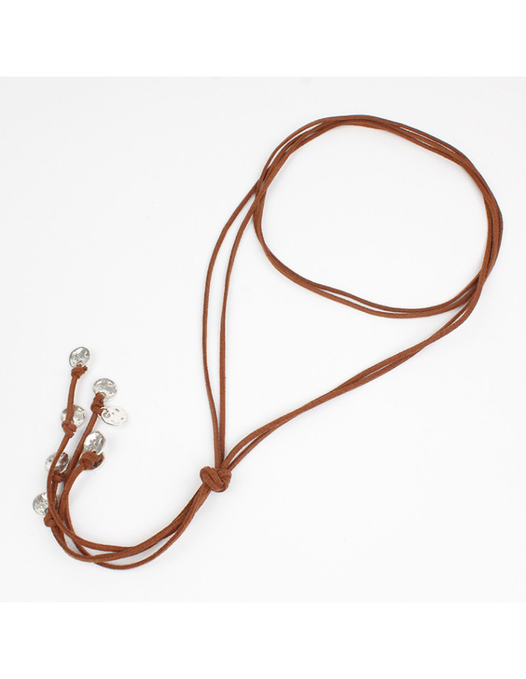 Collar corbatero de gamuza con terminales boho de fundición en punteras. :