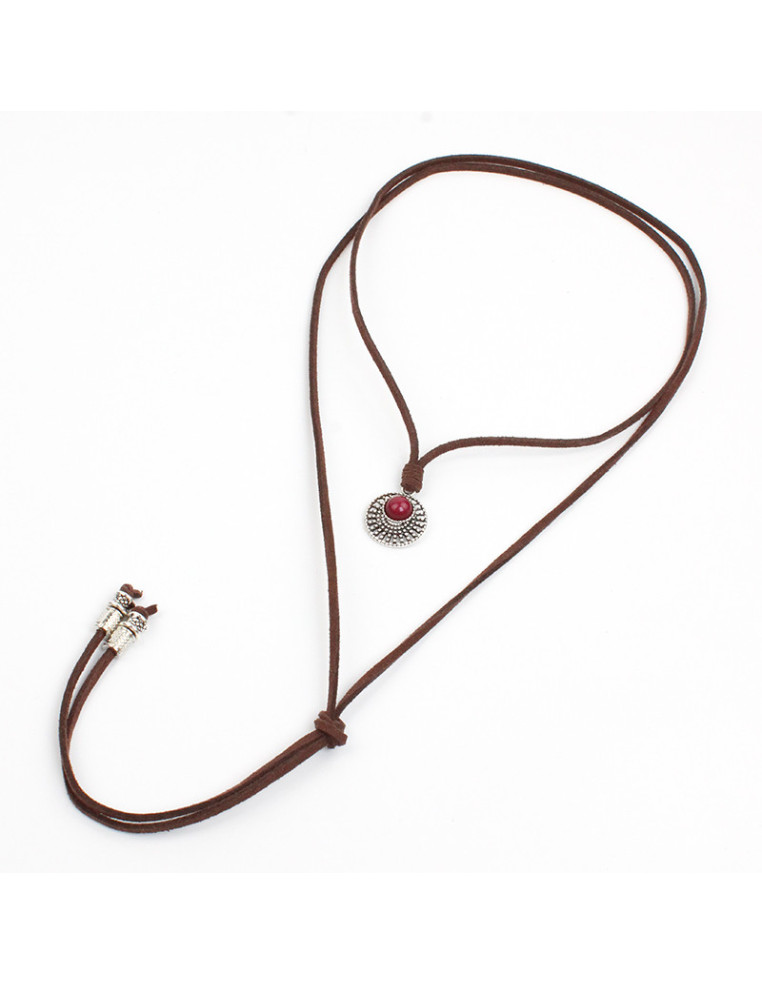 Collar de gamuza de múltiples vueltas, con dije de fundición y terminales en punteras.