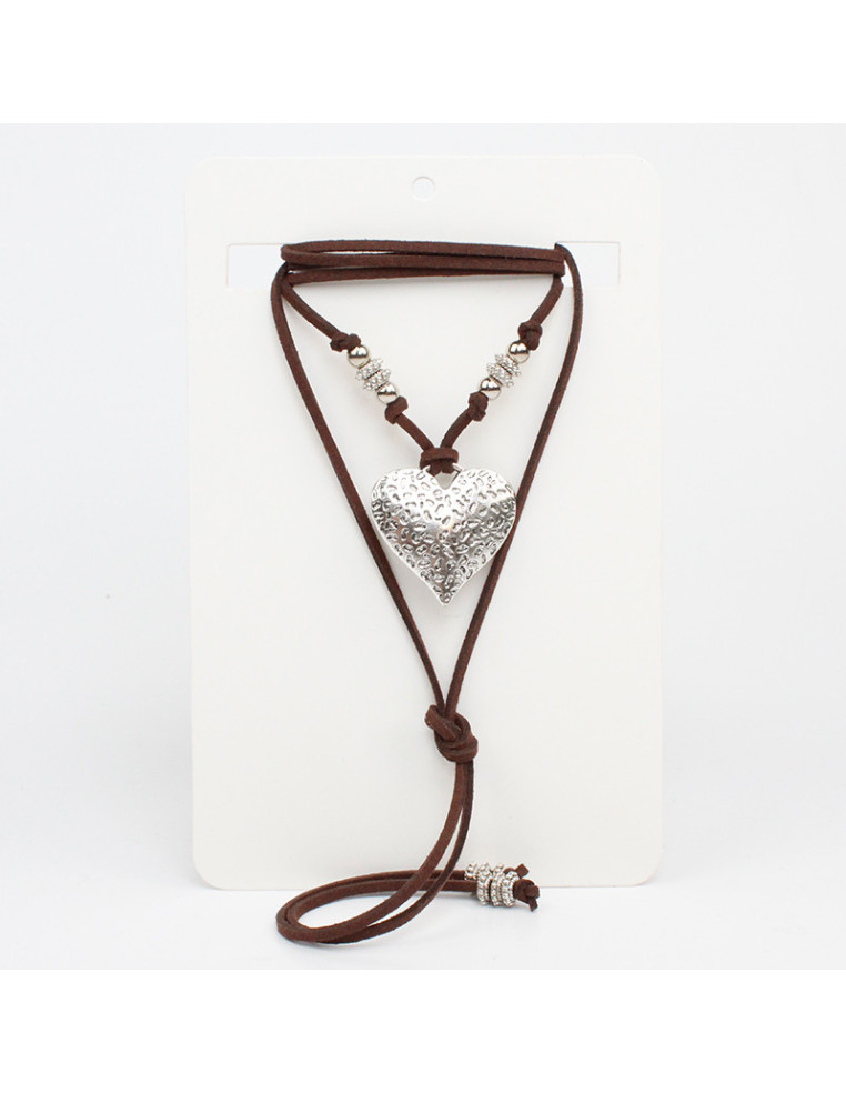 Collar de gamuza de múltiples vueltas, con dije de fundición con forma de corazón y terminales en punteras.