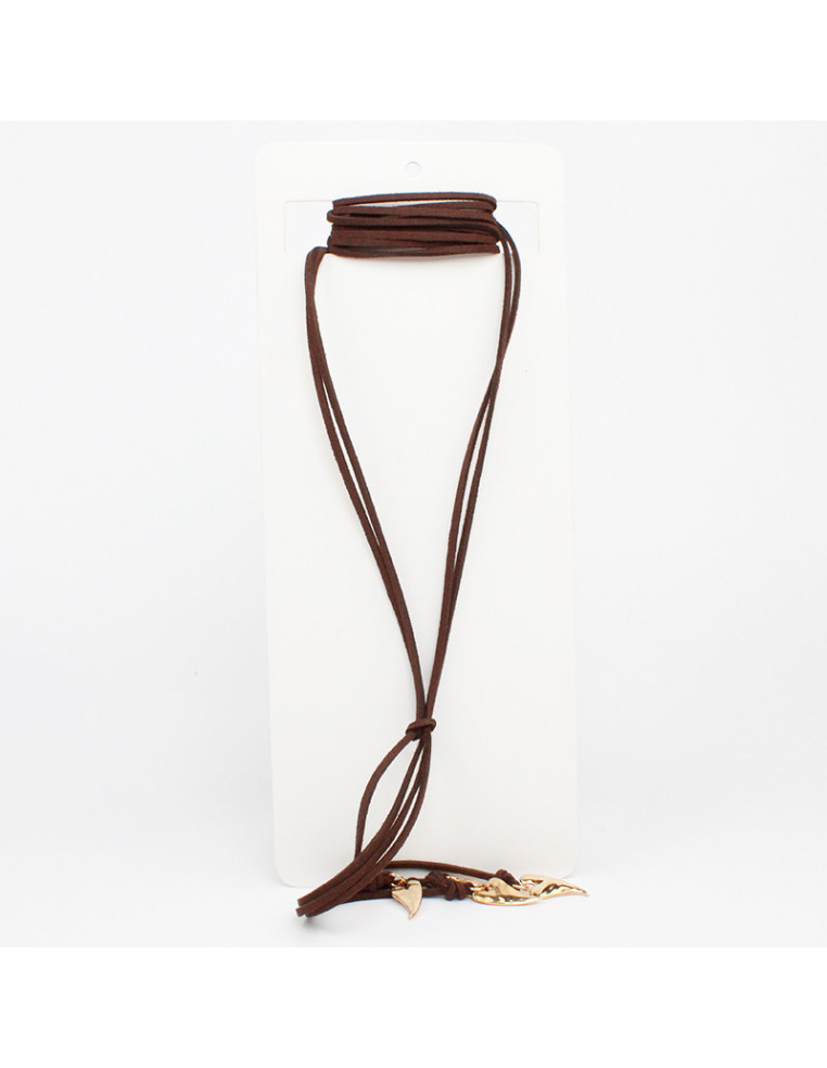Collar de gamuza de múltiples vueltas, con dijes terminales de fundición con forma de corazón.
