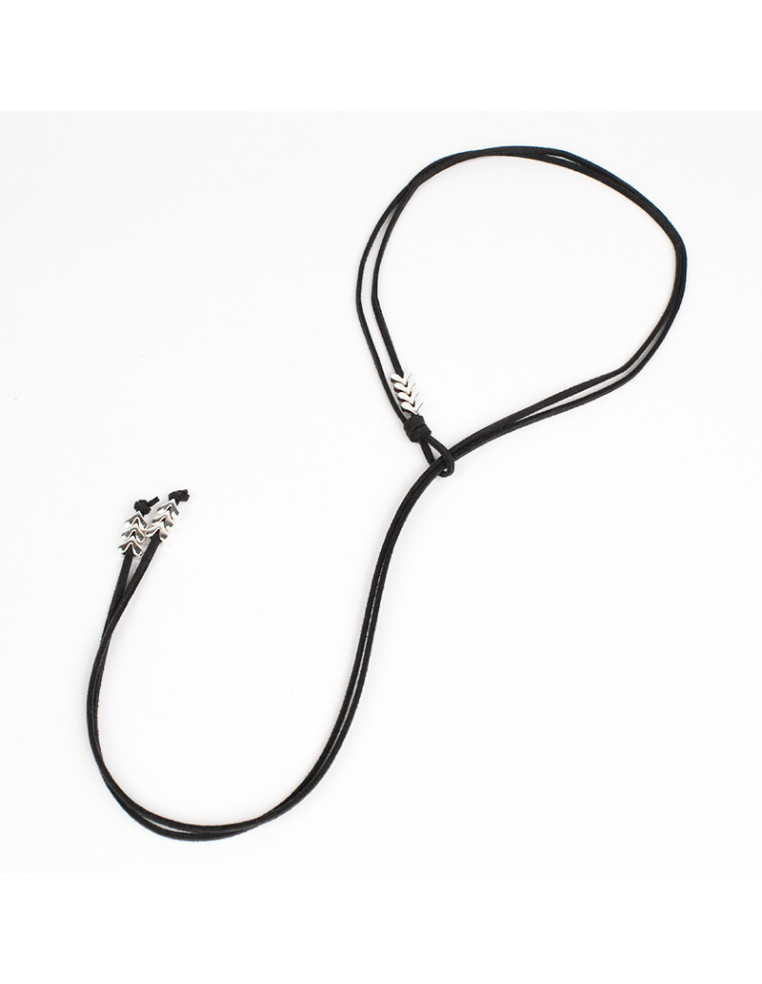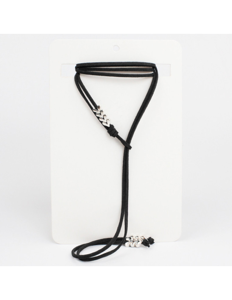 Collar corbatero de gamuza de múltiples vueltas, con pasantes y terminales en punteras.