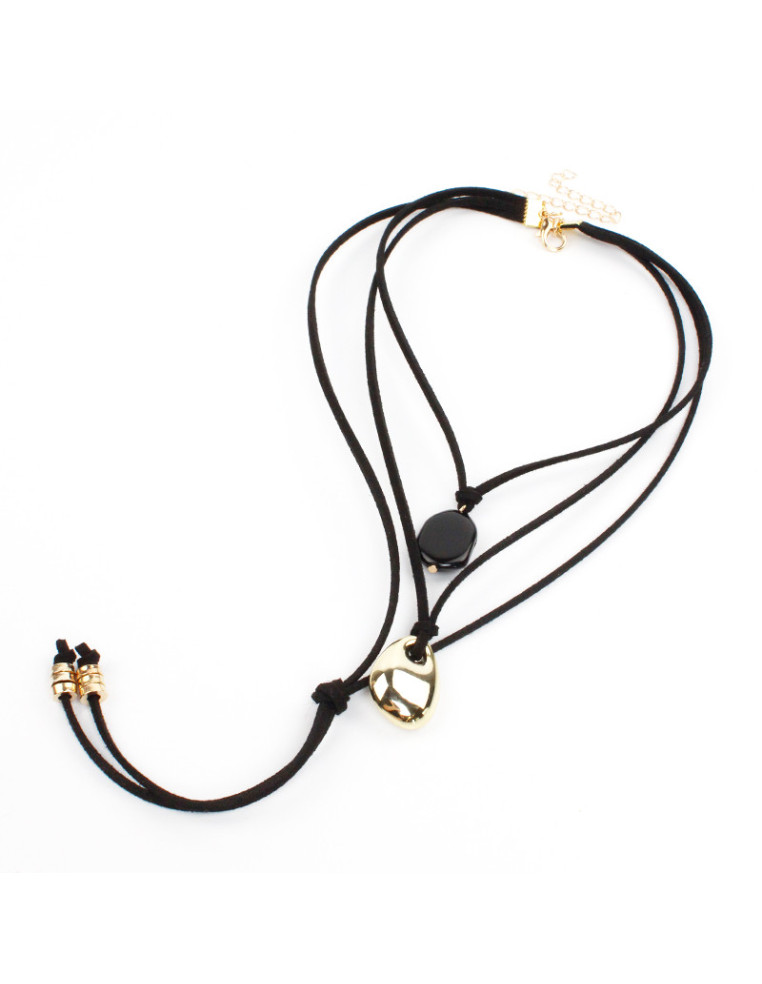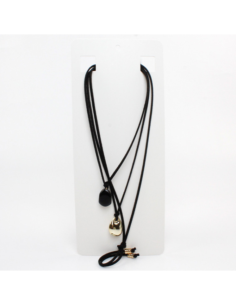 Collar corbatero de triple gamuzas, con dije de CCB orgánico y acrílico.