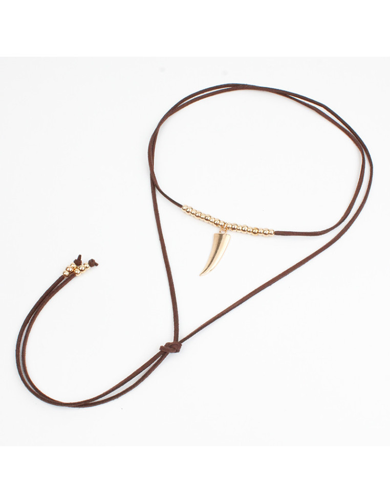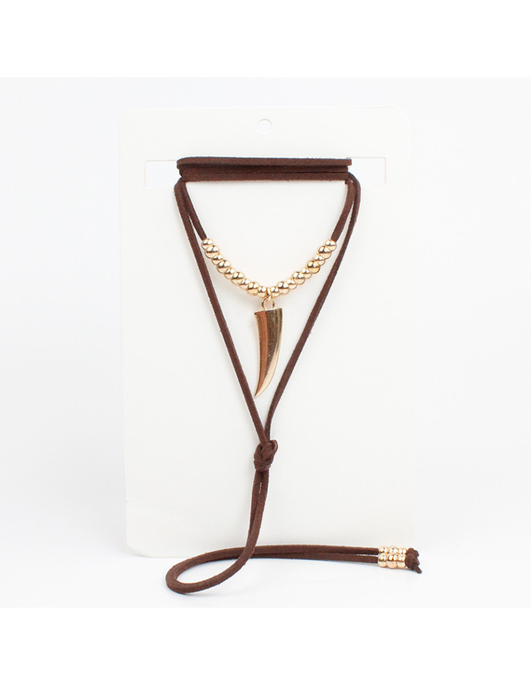 Collar de gamuza de múltiples vueltas, con dije de fundición, pasantes de CCB y terminales en punteras. Medida: 140cm de largo.