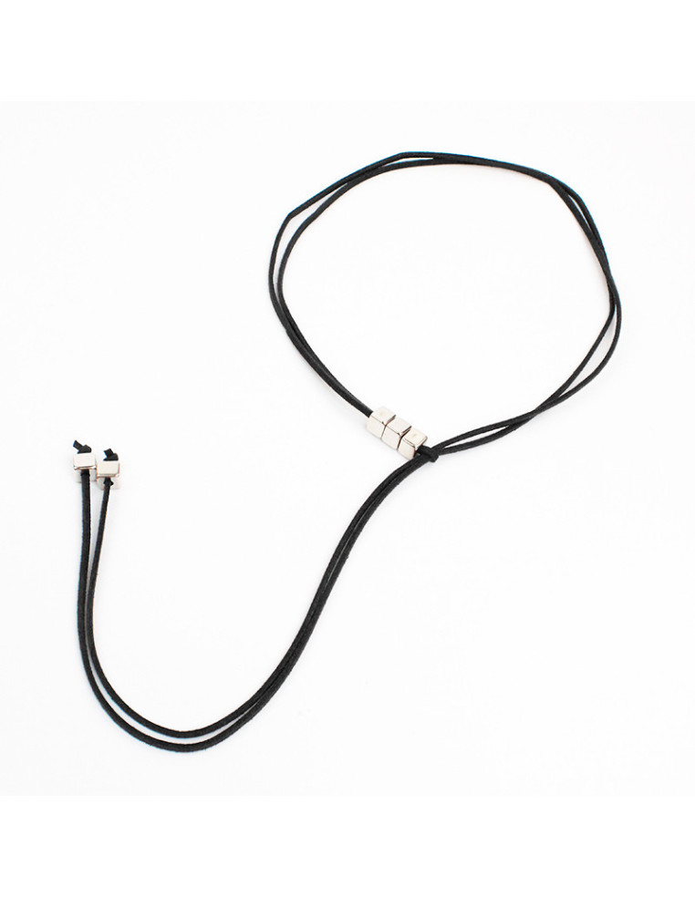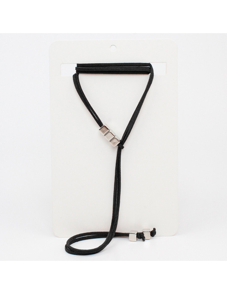Collar corbatero de gamuza de múltiples vueltas, con pasantes de CCB y terminales en punteras. Medida: 140cm de largo.