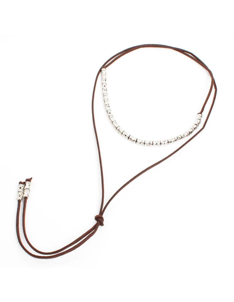 Collar de gamuza de múltiples vueltas, con dijes pasantes de CCB y terminales en punteras.