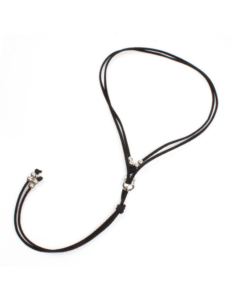 Collar de gamuza de múltiples vueltas, con dije de fundición orgánico y terminales en punteras.