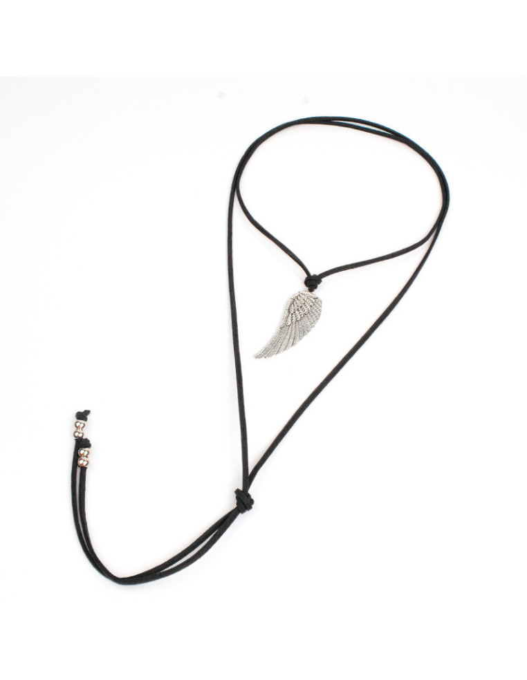 Collar de gamuza de múltiples vueltas, con dije de fundición con forma de ala y terminales en punteras.