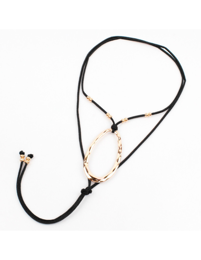 Collar de gamuza de múltiples vueltas, con dije de  fundición dorado y terminales en punteras.