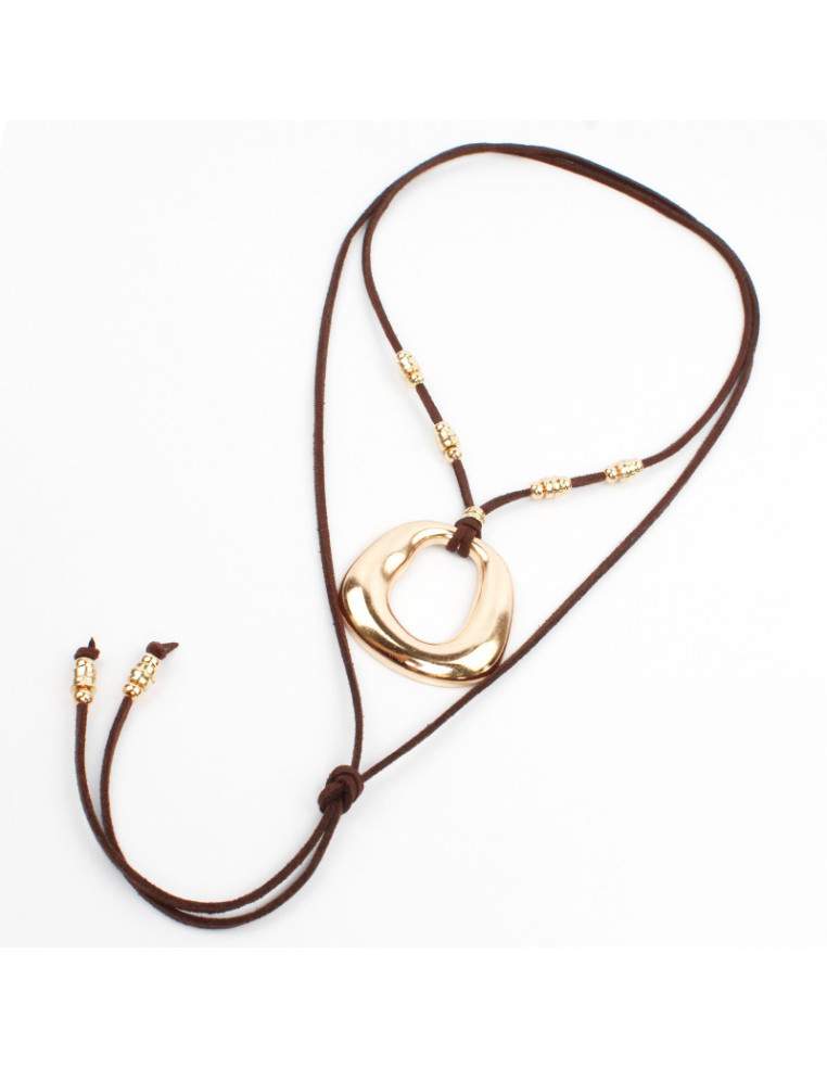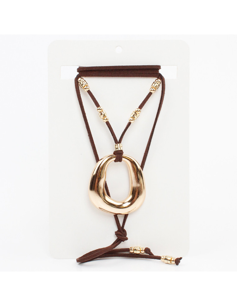 Collar de gamuza de múltiples vueltas, con dije de fundición dorado y terminales en punteras.
