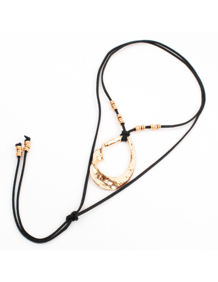 Collar de gamuza de múltiples vueltas, con dije de fundición orgánico y terminales en punteras.