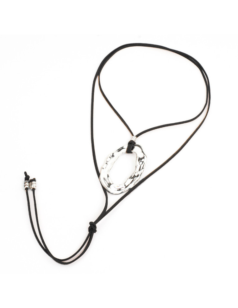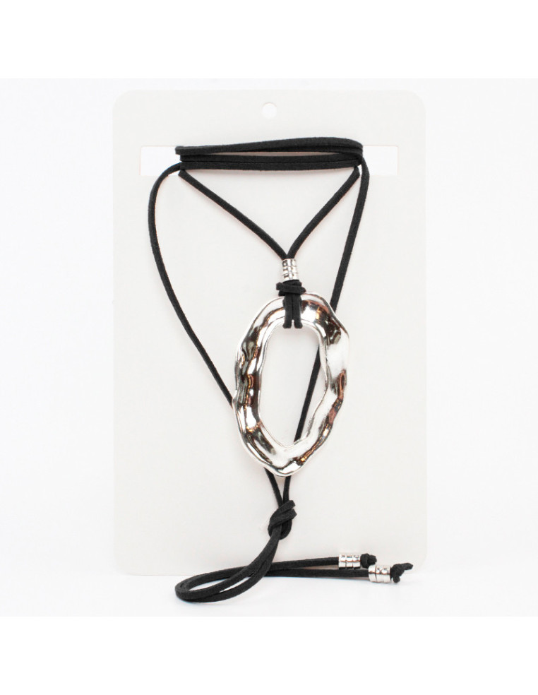 Collar de gamuza de múltiples vueltas, con dije de fundición níquel y terminales en punteras.