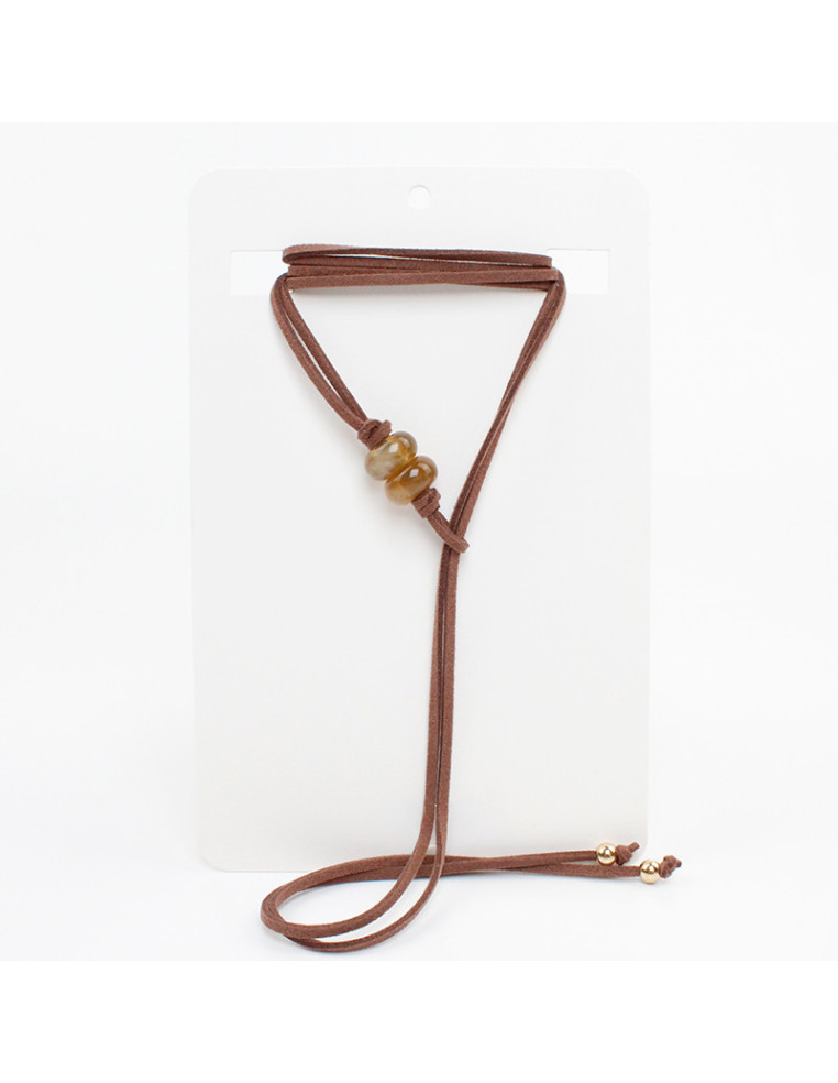 Collar corbatero de gamuza de múltiples vueltas, con piezas de acrílico y terminales en punteras.