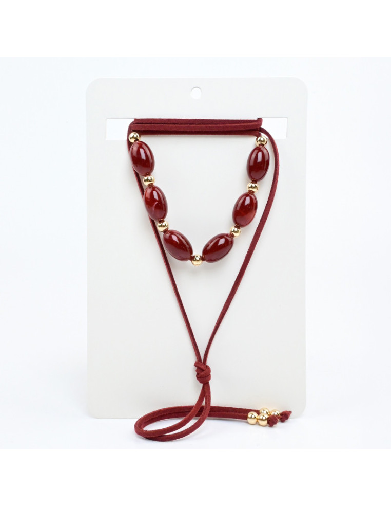 Collar de gamuza de múltiples vueltas, con cuentas de vidrio, pasantes de CCB y terminales en punteras.