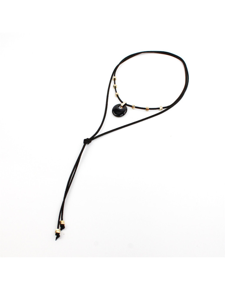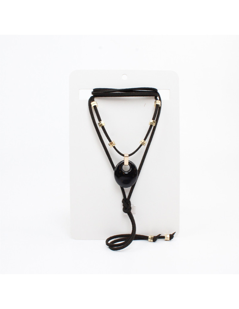 Collar de gamuza de múltiples vueltas, con dije exclusivo de acrílico y piezas de fundición pasantes.