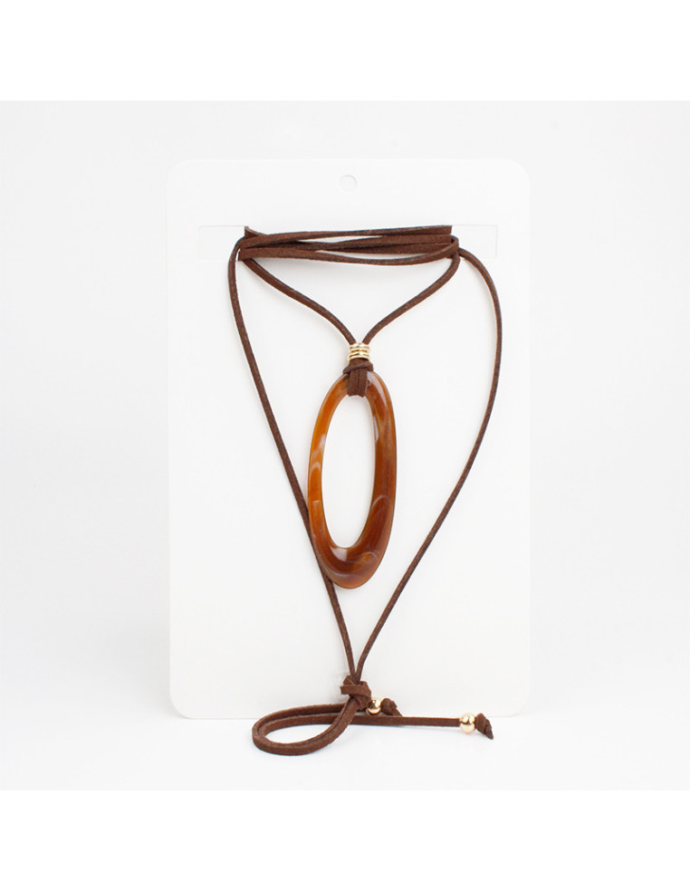 Collar de gamuza de múltiples vueltas intervenido con dije exclusivo de acrílico, piezas de CCB pasantes y terminales en punteras.Medida del collar 140cm.