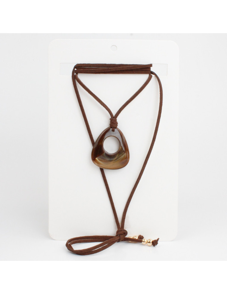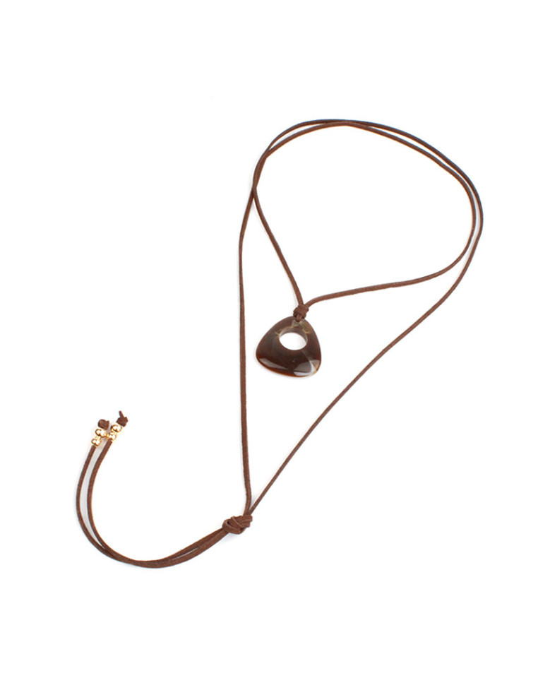 Collar de gamuza de múltiples vueltas, con dije exclusivo de acrílico y terminales en punteras. Largo del collar 150 cm