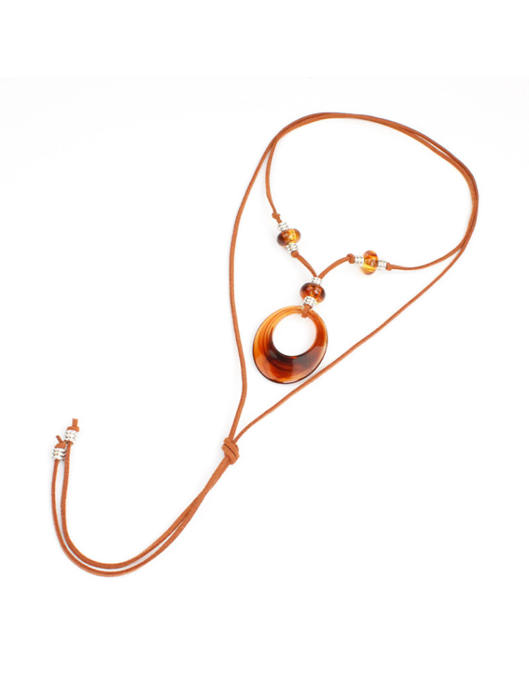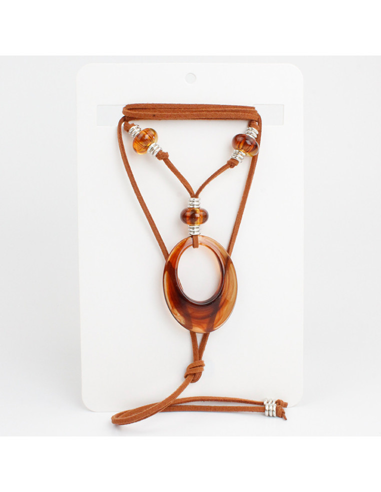 Collar de gamuza de múltiples vueltas, con piezas de acrílico y terminales en punteras.