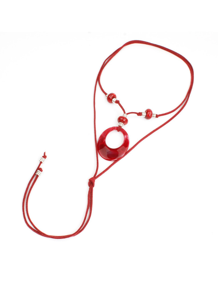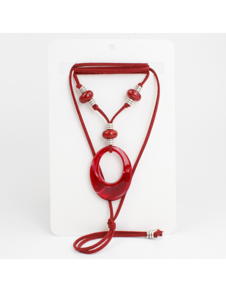 Collar de gamuza de múltiples vueltas, con piezas de acrílico y terminales en punteras.