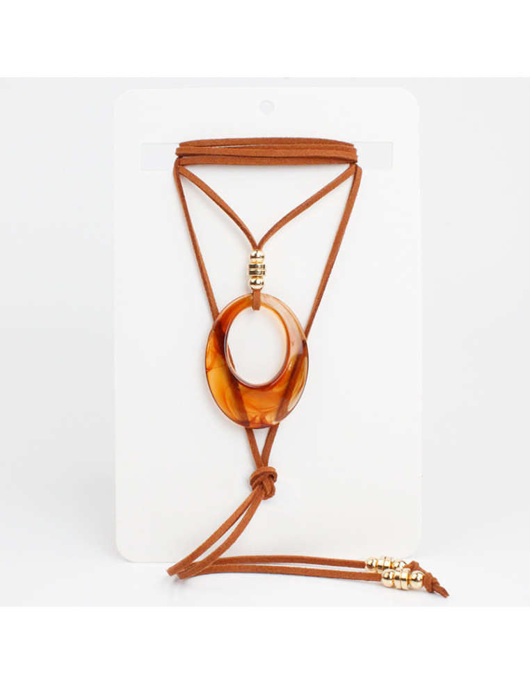 Collar de gamuza de múltiples vueltas, con dije de acrílico y terminales en punteras.