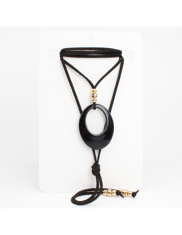Collar de gamuza de múltiples vueltas, con dije de acrílico y terminales en punteras.