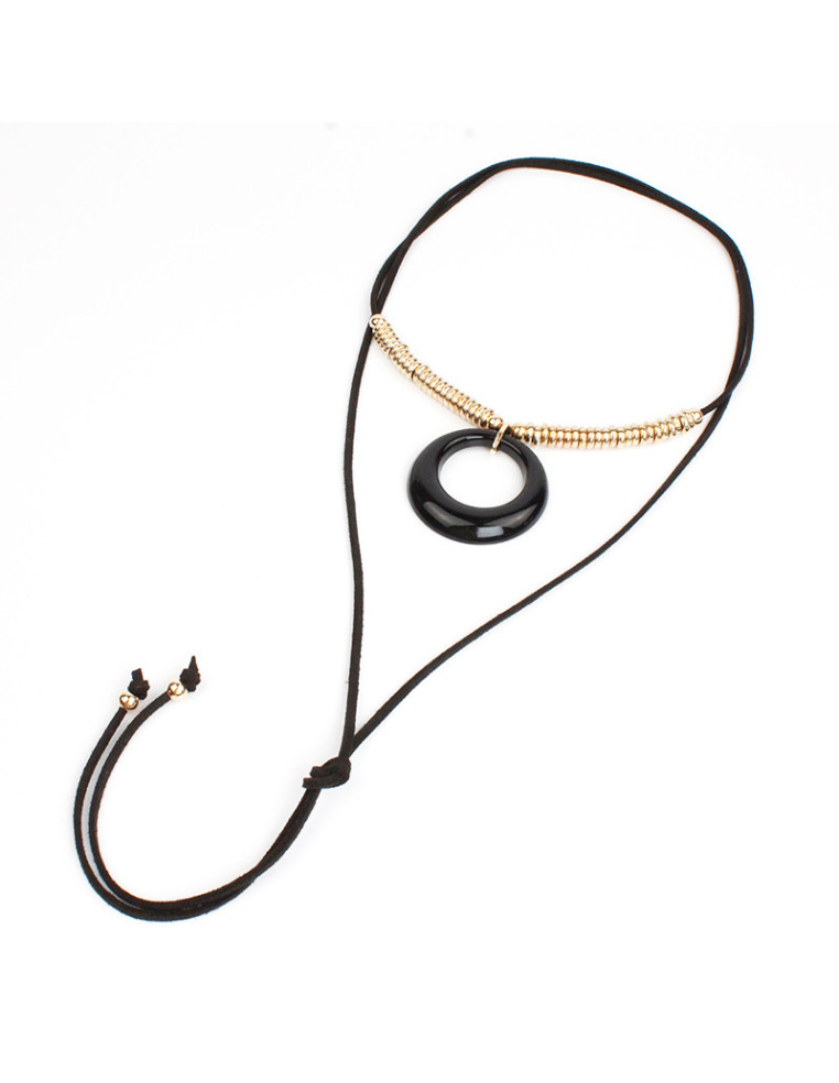 Collar de gamuza de múltiples vueltas, con dije de acrílico y terminales en punteras.