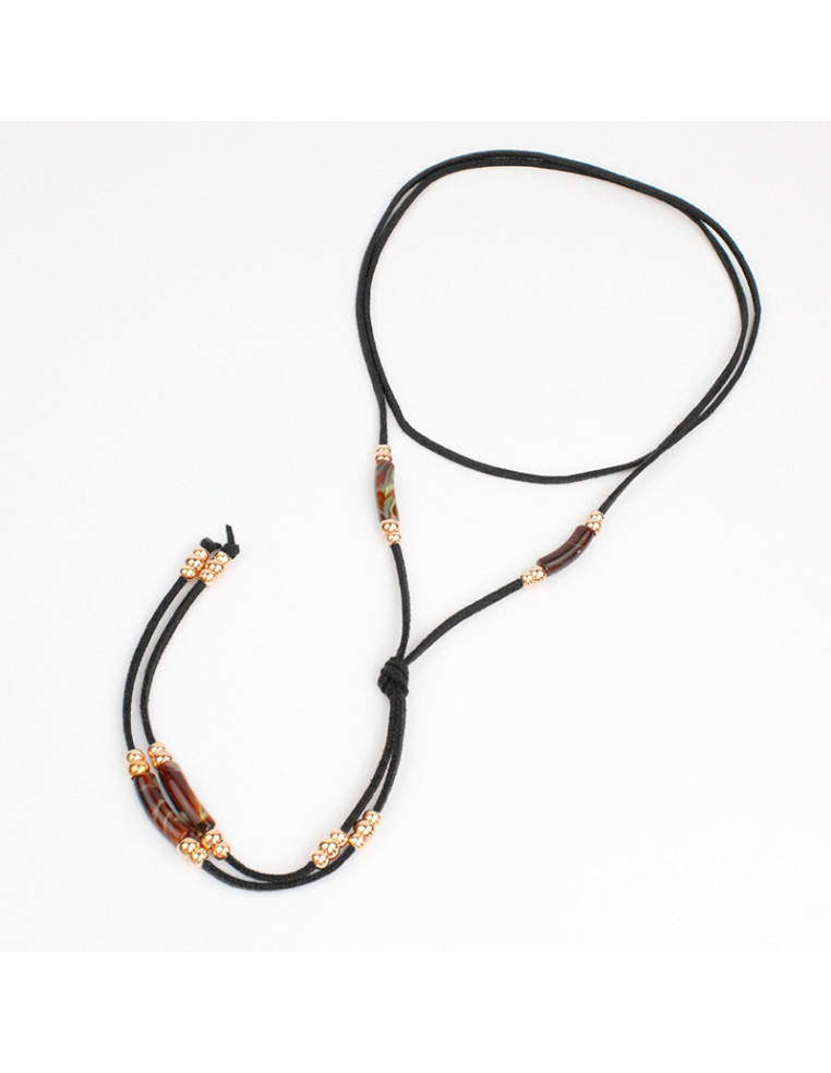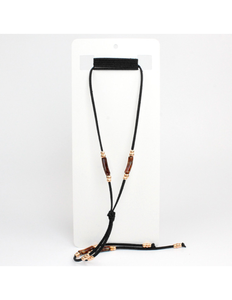 Collar corbatero de gamuza, con piezas de acrílico marmolado y pasantes de CCB.