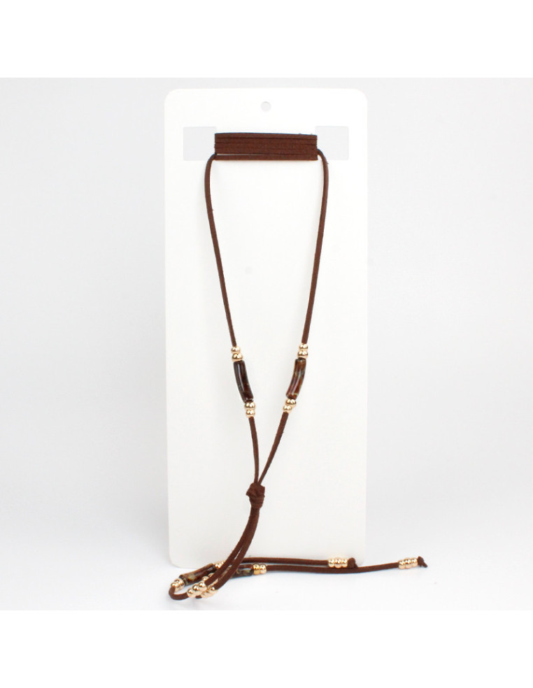 Collar corbatero de gamuza, con piezas de acrílico marmolado y pasantes de CCB.