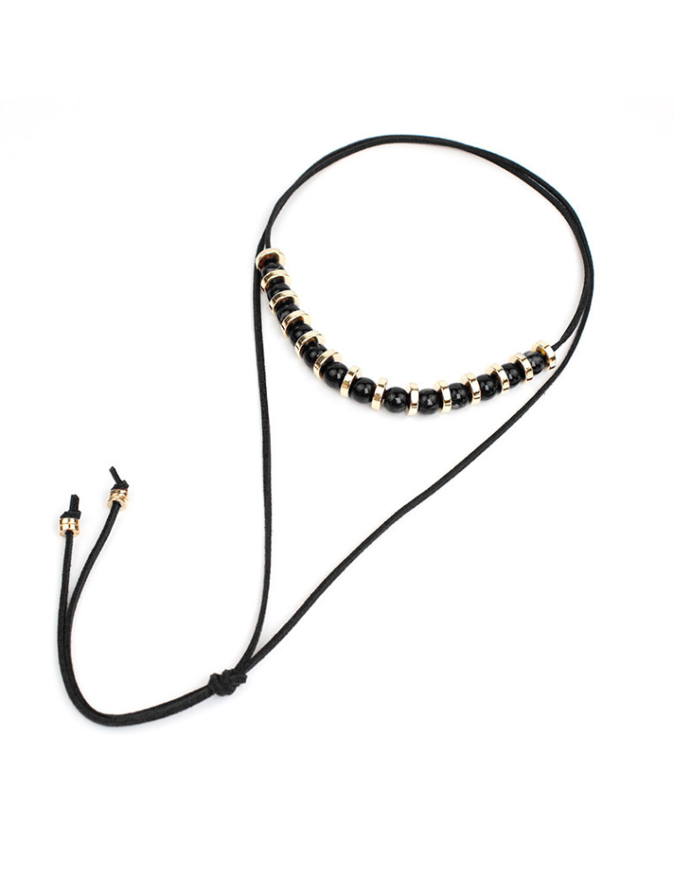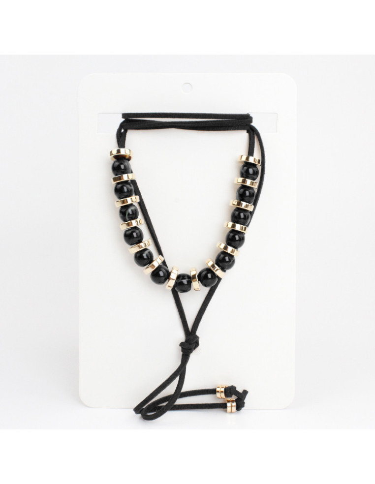 Collar de gamuza de múltiples vueltas, con pasantes de acrílico marmolados, pasantes de CCB dorados y terminales en punteras.