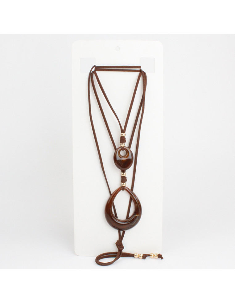 Collar doble de gamuza con dijes de acrílico y pasantes de CCB. Medidas: 140cm de largo.