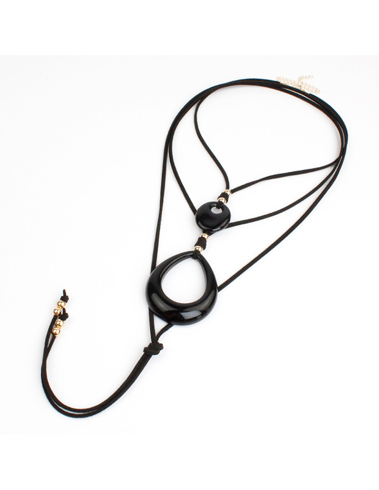 Collar doble de gamuza con dijes de acrílico y pasantes de CCB. Medidas: 140cm de largo.