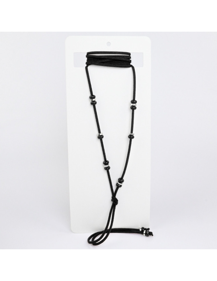 Collar de gamuza de múltiples vueltas, terminales en punteras.